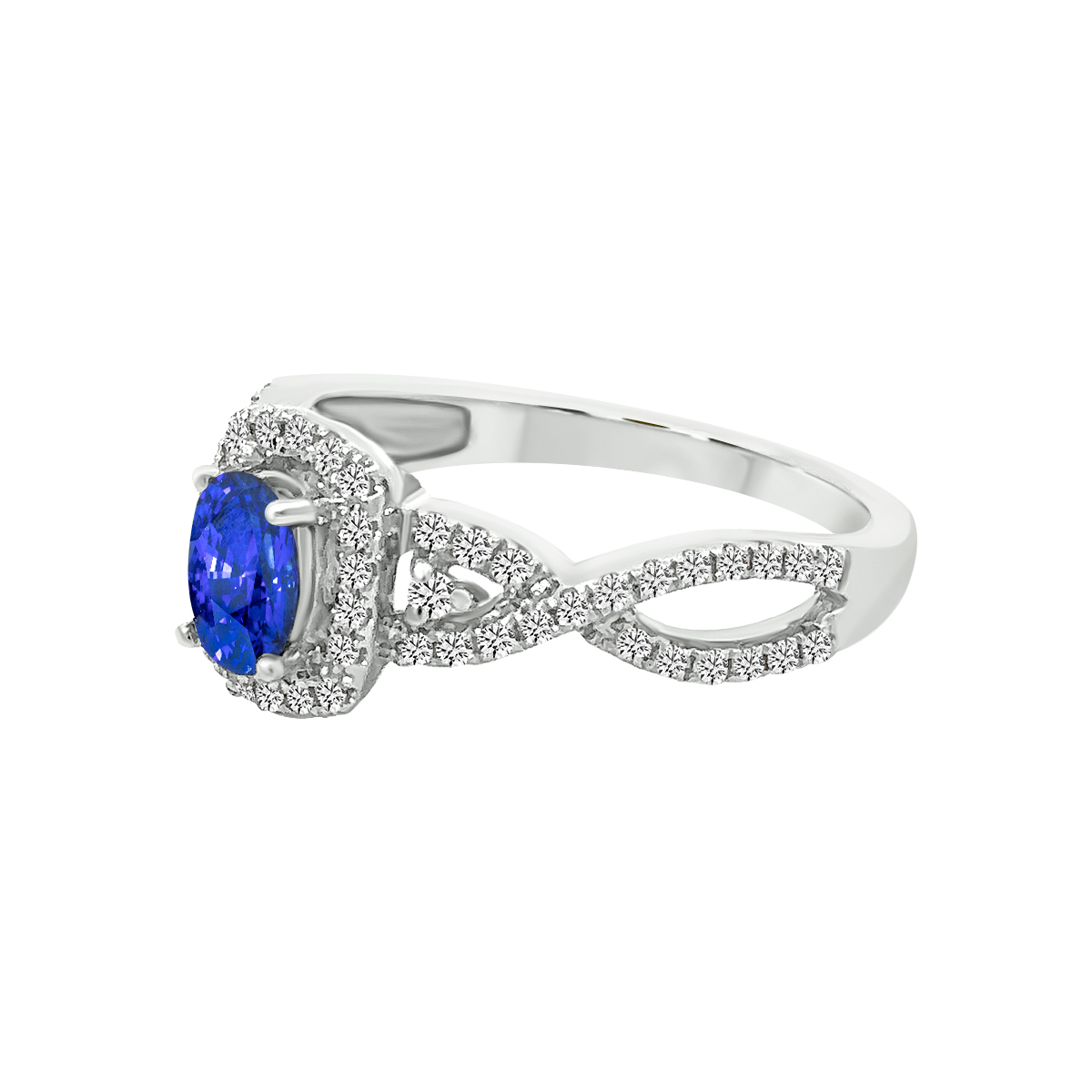 Elevate your style with our 14K White Gold Ring, boasting an exquisite Oval Blue Saphire and shimmering Diamonds. A luxurious statement of sophistication and grace